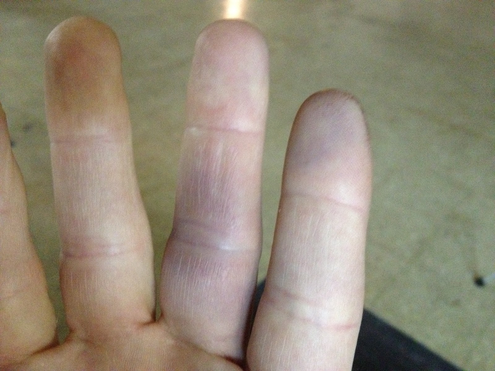 Update on Kade’s fingers….see the purple in the middle of his middle finger and on the tip of his pointer…that’s about 4 days after impact. It’s still hurting…he still can’t really type, but it’s getting better every day!