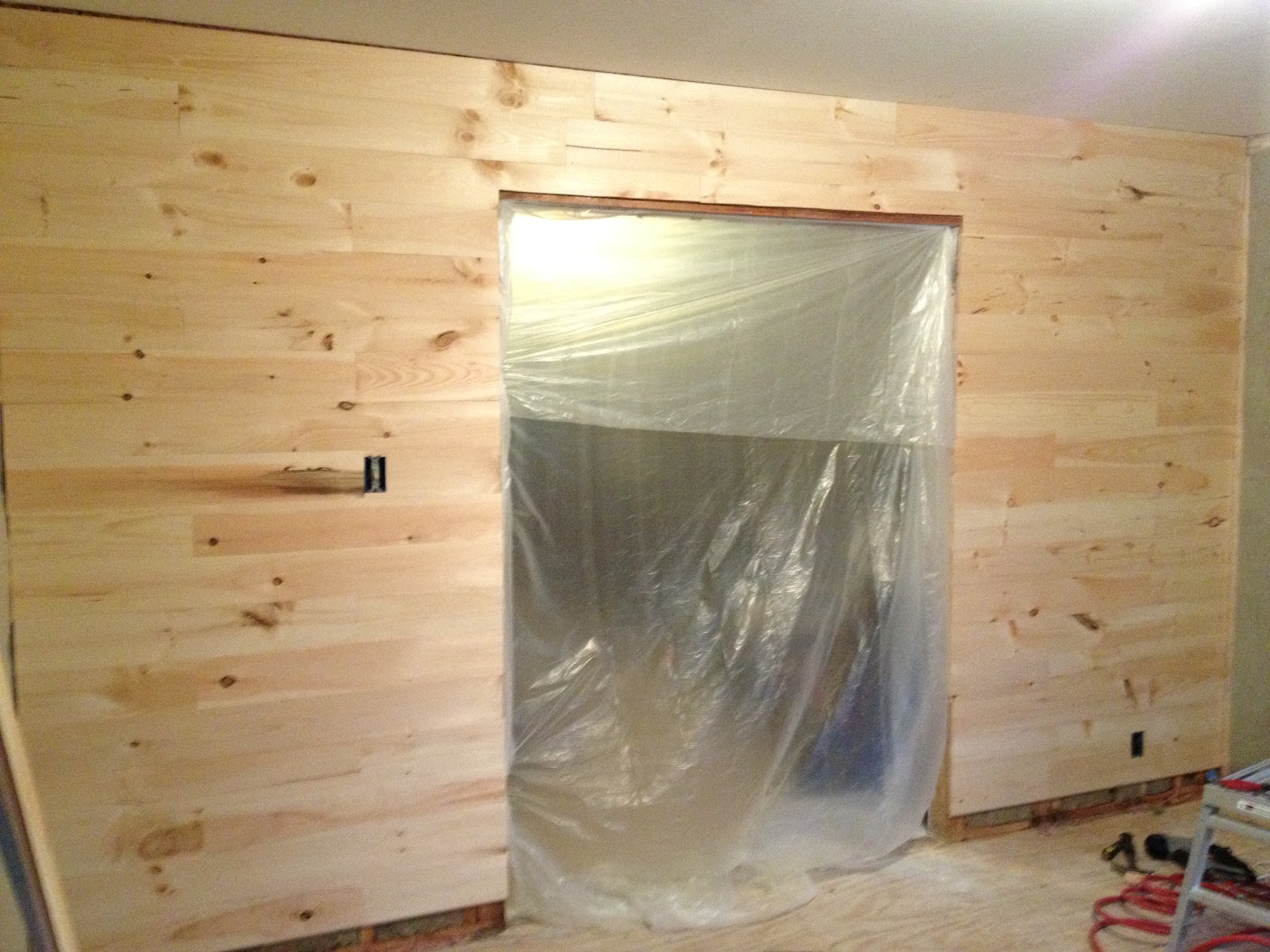 1st Wall done! (well…almost) Still need to do the bottom row…but those are going to have to be trimmed. I got started and then Dad just couldn’t stay away…I think he really wanted to get in on a relatively quick project, well…maybe we should just call it one that you can actually see progress on 🙂