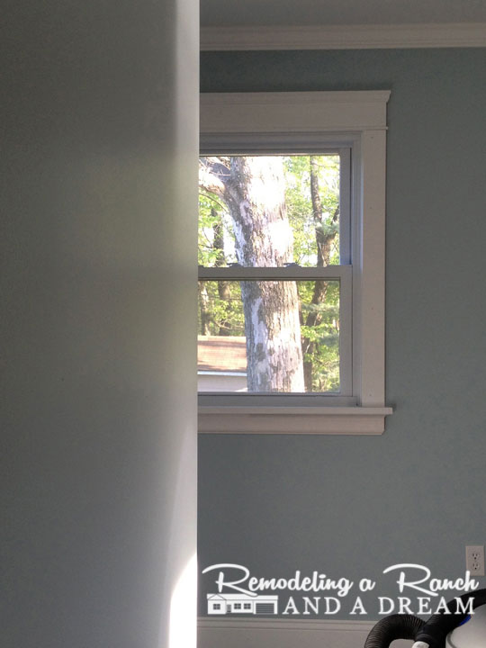 The window casing saga continues 🙂 This really shouldn’t be so difficult! We tried some samples in the master bedroom today. Thought maybe a different view might make a difference, lol.