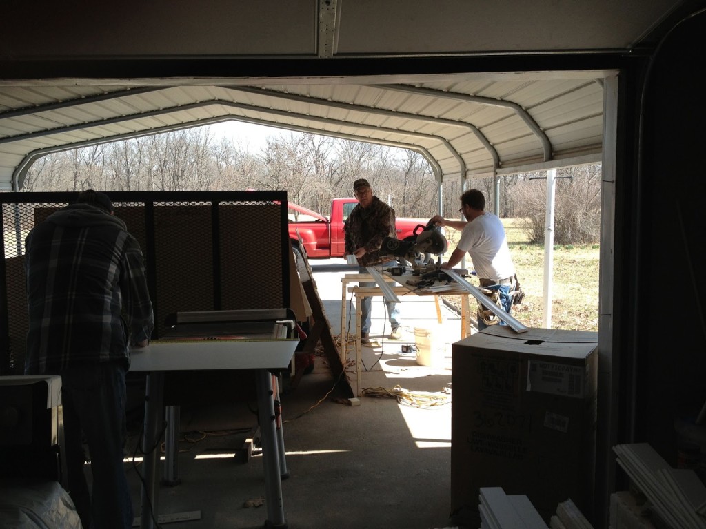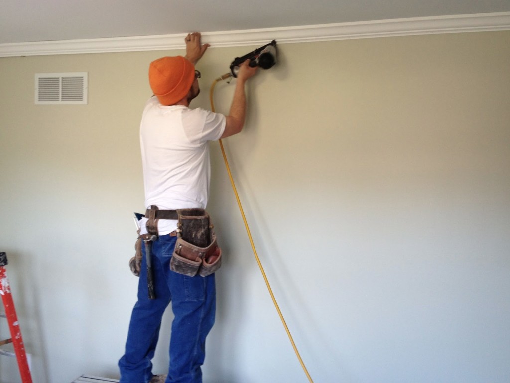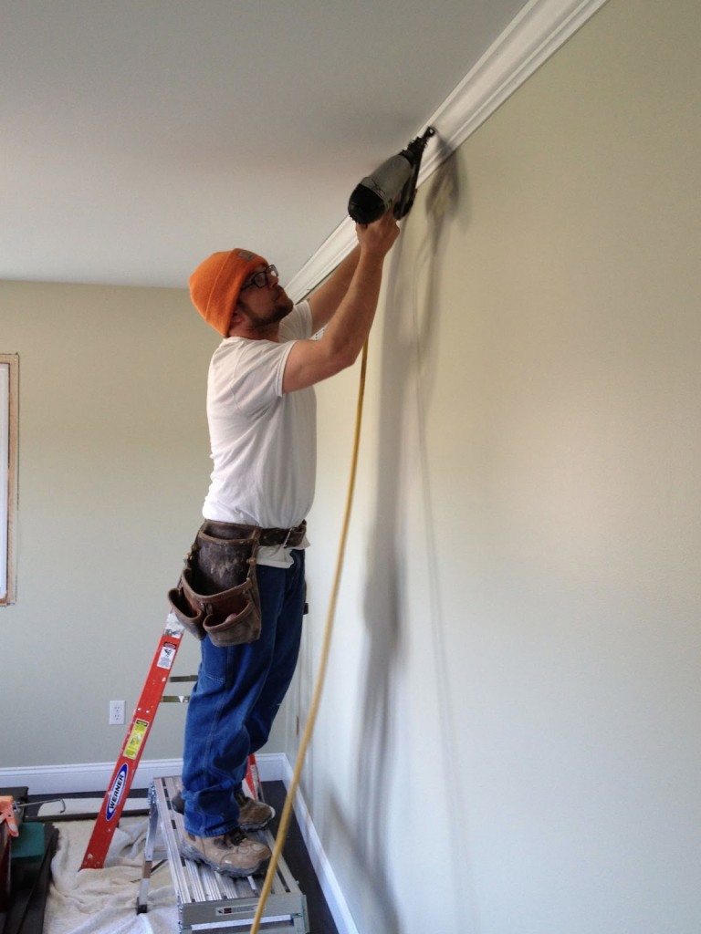 Today we’re all working on different projects! Kade and I are doing misc. stuff that needs to get done and Jeremy is back and installing crown moulding!