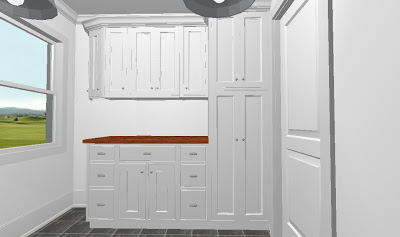 It would go right there to the left of the base cabinets. Cute!
