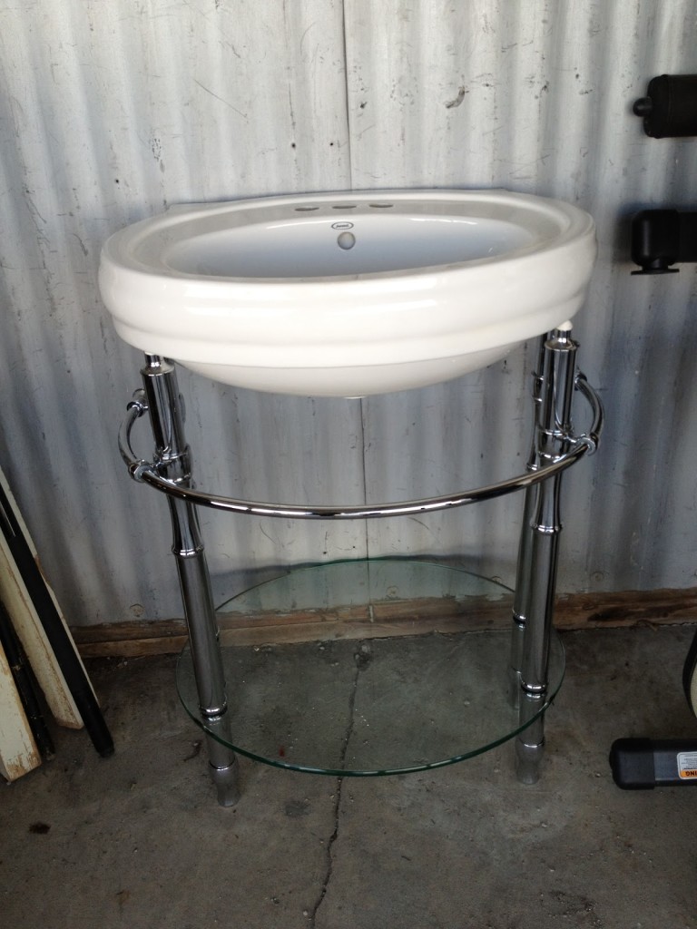 I also found this great old peg leg sink for $45! (I forgot the peg leg at the antique shop though…oops!) I figured we could make some kind of cool base for it out of an old table or something…it can’t be too hard right?? lol!