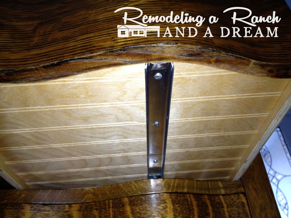 I had a good friend of mine make new drawer boxes for the two small drawers on top and the next big drawer. The bottom drawer was usable…just needed a small amount of repair. Then this little bugger took some serious thought. Took us awhile to figure out how to put the undermount drawer glides in…but I’m so glad that we were patient and figured it out. Those top small drawers pull out at an angle…so it wasn’t as easy as just lining up the drawer and mounting the bracket!