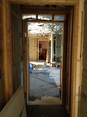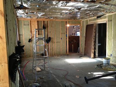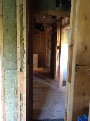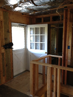 Kitchen area on the left, the new 1/2 bath, Mudroom and Laundry in the middle (behind those new walls) and the Dining Room on the right.