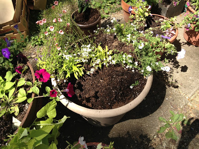 Ok, so I’m not going to lie…I’ve been planting pots of flowers for our current house! I just can’t go without anything pretty growing around here. Well one of my bff’s is getting married in August and this weekend she’s going to pick out her wedding dress. All week I’ve been trying to figure out if i can get there or not…well…since Tuesday. I really wanted to be there…but you see the house…yikes! So this morning I finally decided that I thought I could go, packed my stuff…headed out the back door and ALL of the planting that I had done yesterday was RUINED!! COMPLETELY RUINED!!! Like a massacre!