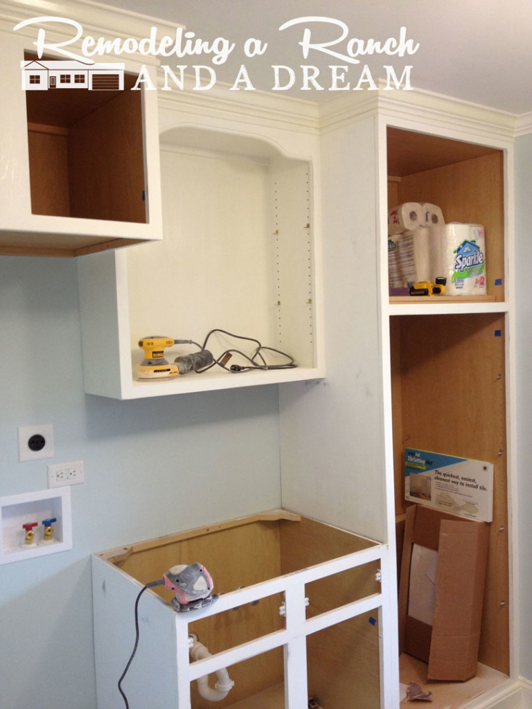 and sanded the polyurethane off of the cabinet boxes!!  I just couldn’t take it!