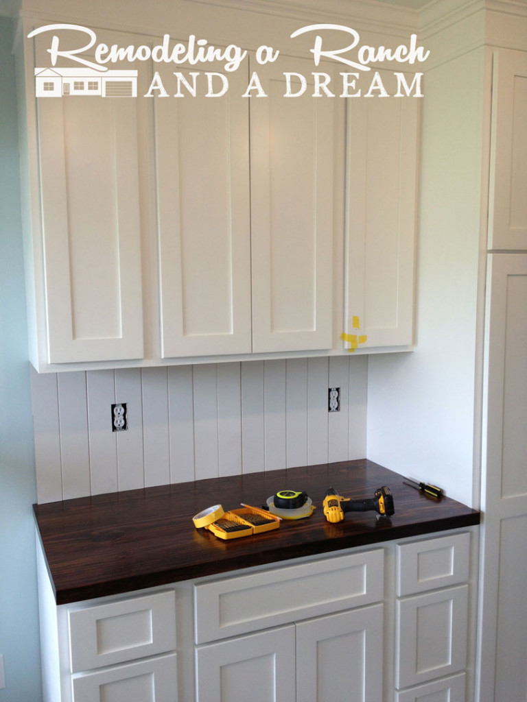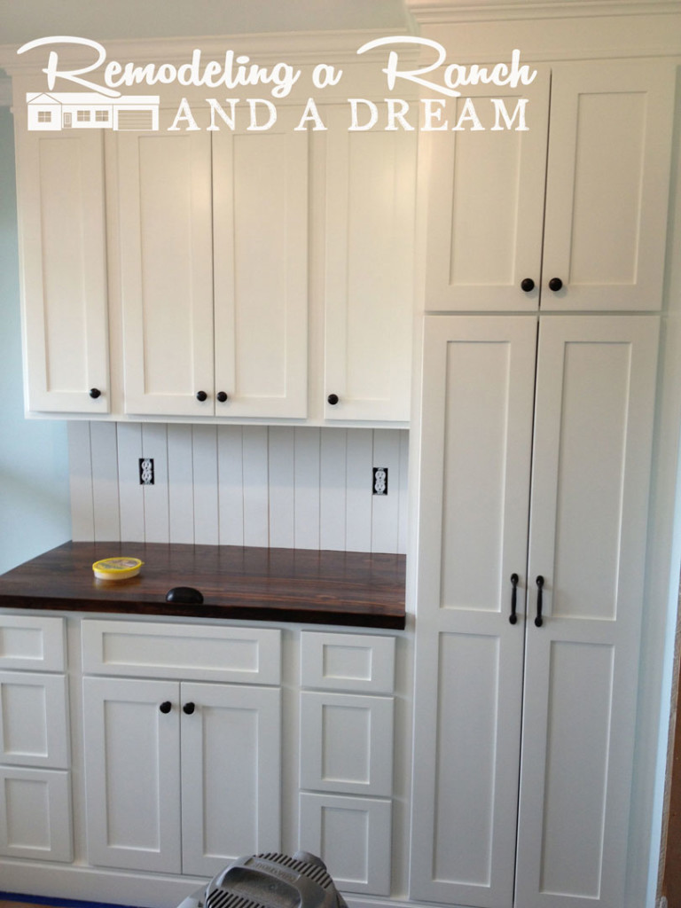 Looking good so far.  I’ll take a closeup when I’m all done so you can see the detail of the knobs & pulls.  In this room alone there are going to be 5 different knobs & pulls.  YIKES!  Hopefully they’ll all go together o.k. (I’m still not sold on that beadboard backsplash.  hmmmm)