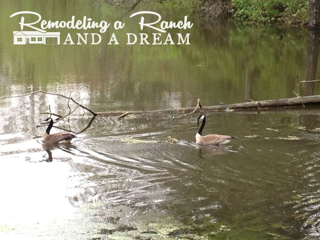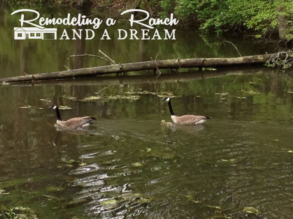 The geese were back on our pond this afternoon.  I was really excited to see that there was a baby with them.  They have a hard time making it out here because there are too many predators.  It’s actually rare that I ever see them make it past the egg stage!