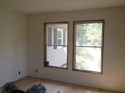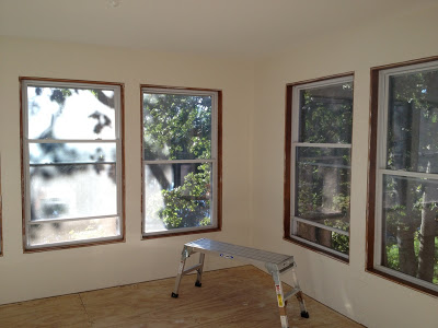 It only took 3 days, 1 coat of primer and 3 coats of paint!!! Now we need to build new window jambs. The new wood walls are much thicker than the drywall & paneling that was out there before.