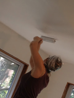 Had to give the ceiling a fresh coat of paint too…it looked so dirty. Don’t you love the saran wrap on my head? Hey…it’s what you do when you don’t have a hat 🙂