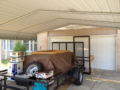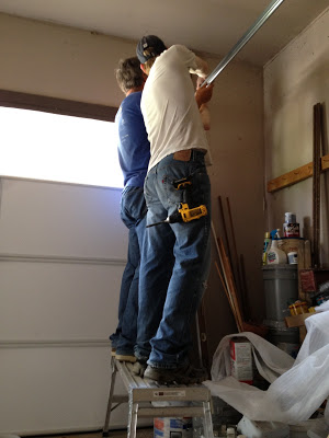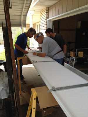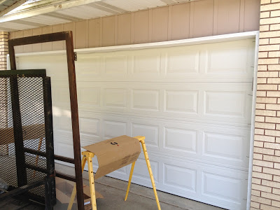 Well, it was sure a hot one today! My Dad and is friend Lyle worked on installing our new garage door. Remember the old one?? YUCK!