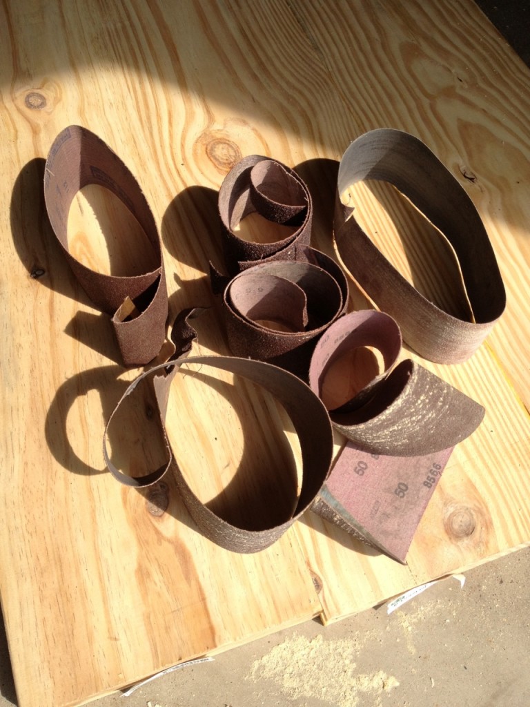 and this is NOT a joke!! I seriously broke that many sheets of sandpaper with my belt sander!! I used the Black & Decker Dragster. I love that thing…but COME ON…what’s with all the broken paper???