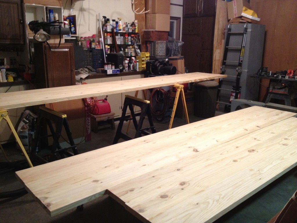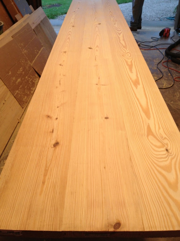 OH MY GOSH!!! This has been such a frustrating day!!! I decided since the weather was decent that I should probably go ahead and sand the wooden countertops…after all…these boards are just regular 2×10’s like you’d use as a floor joist!