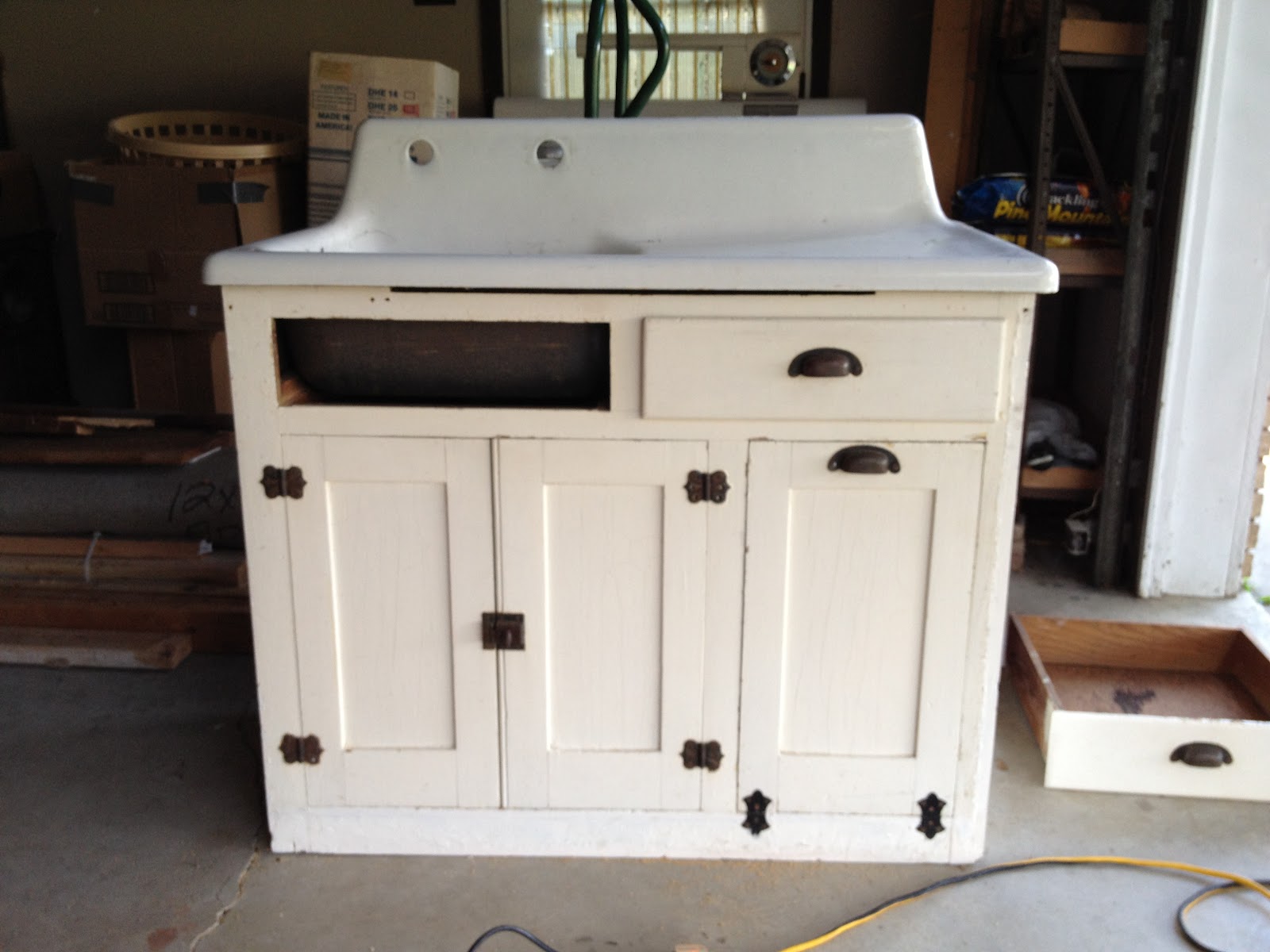 Soooo…we drug it up to the new house and I dug out an old cast iron sink that I just happened to have on hand from one of my Dad’s friends. (Thanks Floyd!!) and can you even believe this???