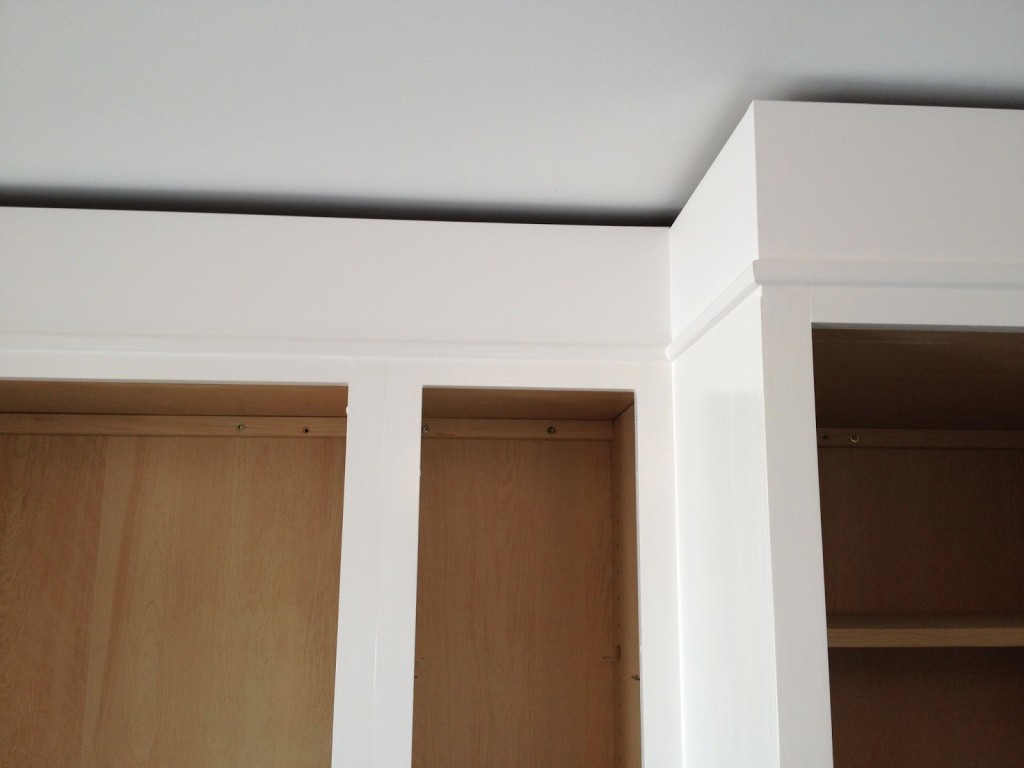 Today I FINALLY got the polyurethane on the laundry room cabinets. I used Minwax water based wipe on poly…and let me tell you…I was not impressed. Usually water based poly is crystal clear (which is what I wanted since I painted the cabinets super white) and low and behold…now the cabinets have a yellow hue. UGH! SOOOO frustrating!! Had I known that was going to happen I would have just used the regular wipe on poly which I love! I swear…we are not meant to have a nice looking laundry (clutter) room!! Kade still hasn’t gotten the crown moulding up on the top of the cabinets, so I just poly’d up to my top piece of trim, and will paint & poly the crown and the “add on” as soon as they are up. I’ve gotta just keep moving forward and try to get SOMETHING done!