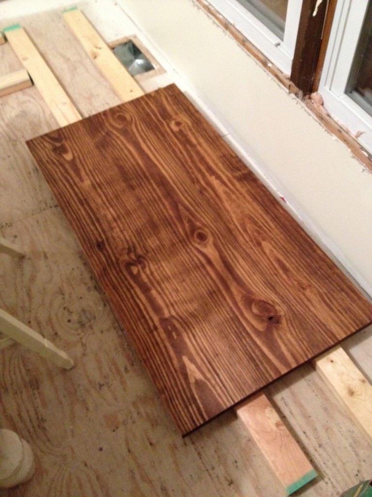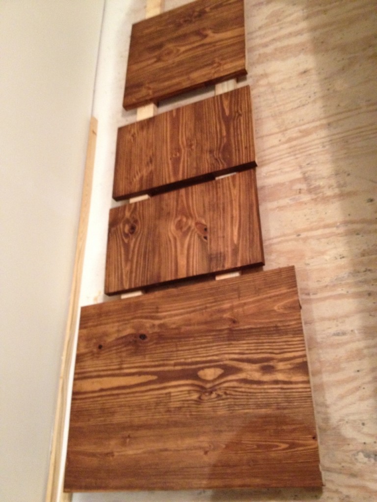 Over the past month or so I’ve been testing a bunch of stain colors, mixtures, with wood conditioner, without wood conditioner, etc. so I can finish all of the wooden countertops. FINALLY…I think I’ve got something I like. First of all