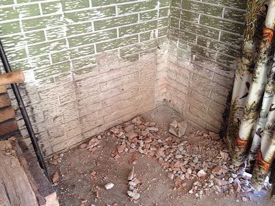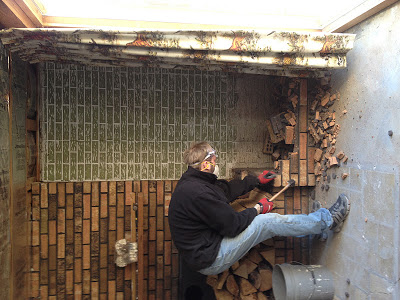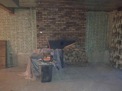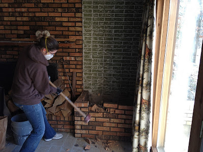 Well, we got more some more done today!  Finally we were able to break out the brick wood boxes on the sides of the fireplace in the basement.  Yeah baby!!  Kade started with a chisel, and I finished with a sledge hammer  🙂