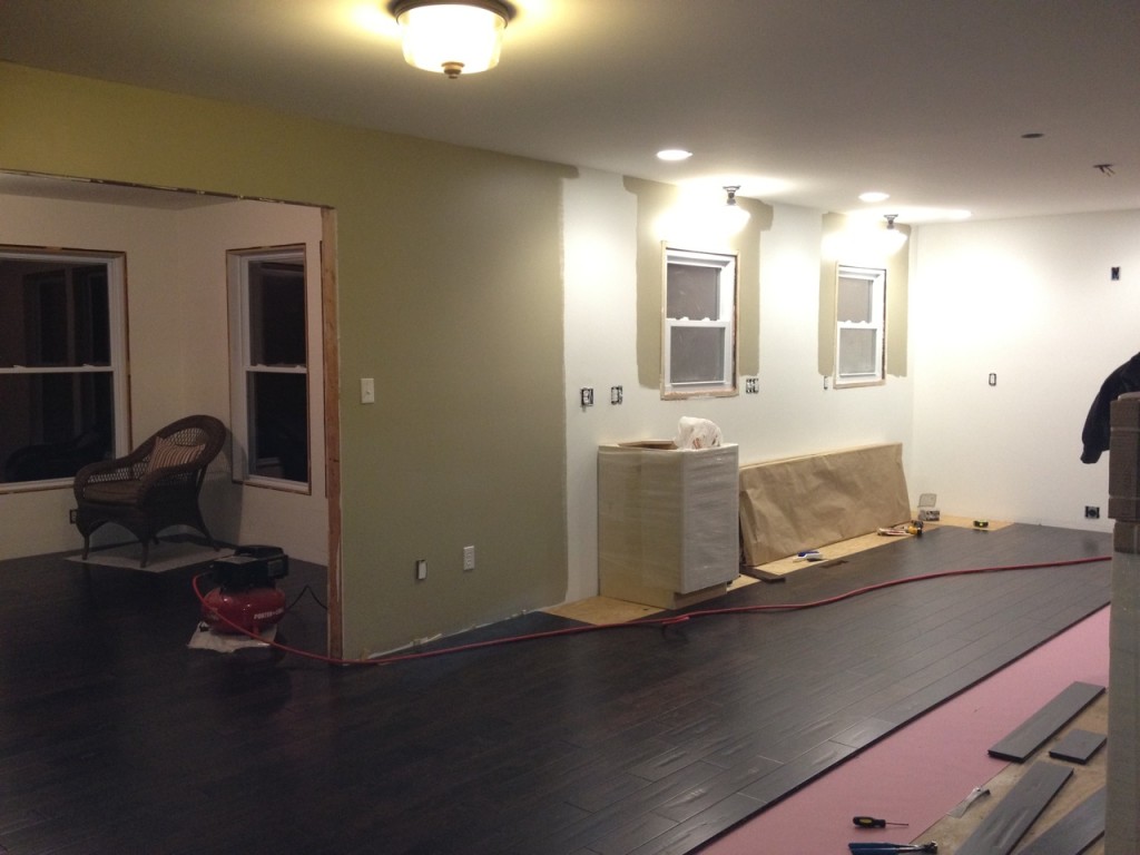 So we’ve GOT to get the flooring done in the kitchen, at least far enough so that we can install the island cabinets. The guy is coming from the cabinet company Saturday morning to help us with the install. There was a bit of an error in the cabinets that we ordered (the style wasn’t exactly what we thought we had ordered) so they’re lending us the installer free of charge to make up for it. We decided that would be better than having them replace every cabinet door in the kitchen/mud room. I think there are 39 cabinets….several and quite a few with double doors….so that would just be awful!