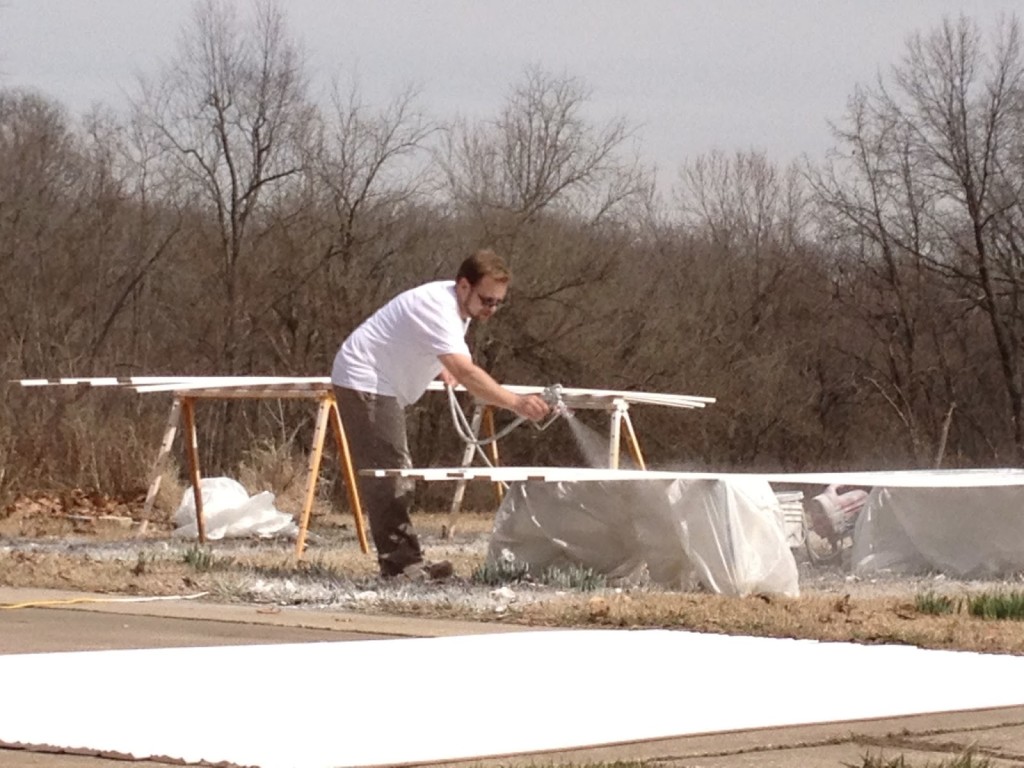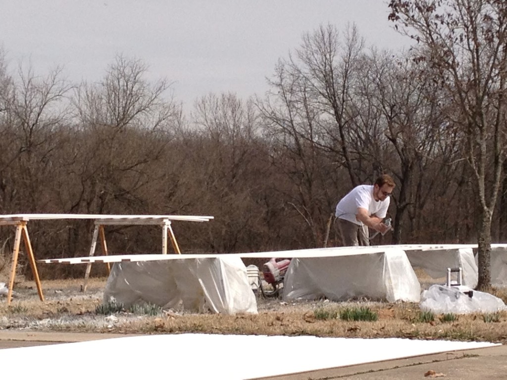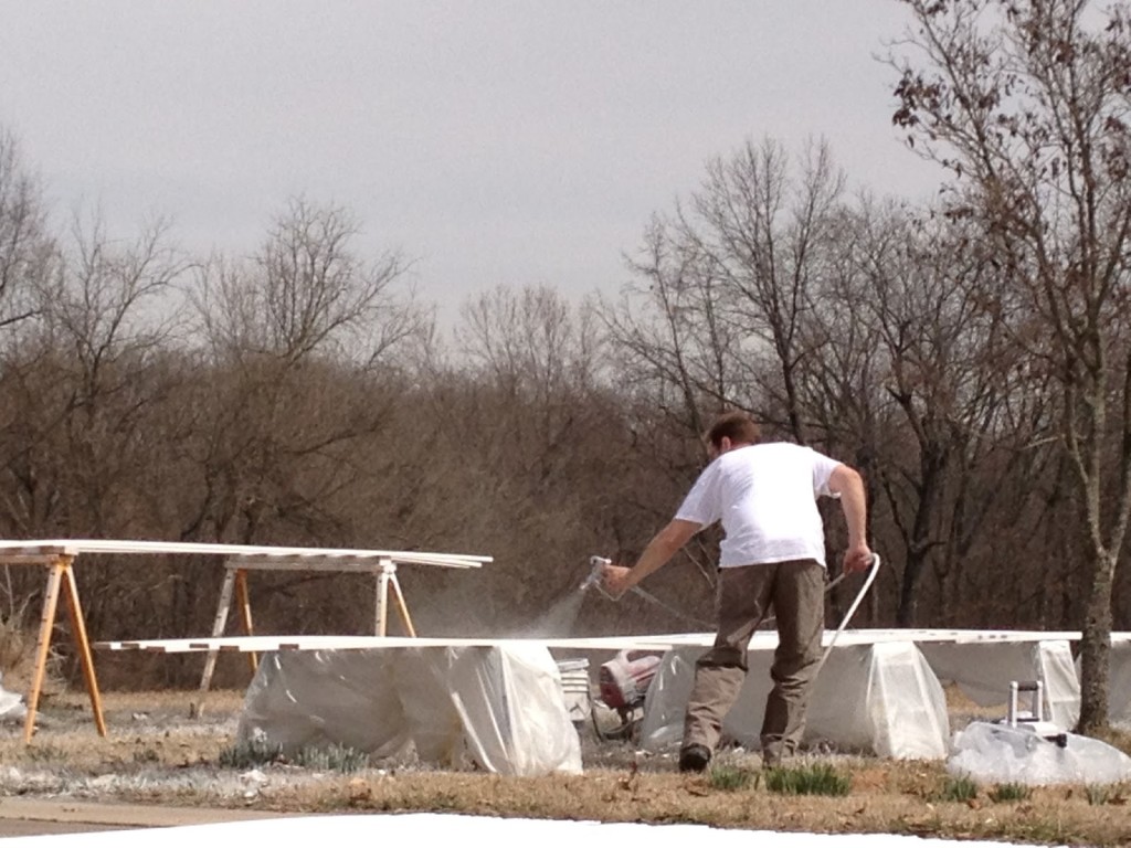 For months now all I’ve been thinking is HOW IN THE WORLD AM I GOING TO PAINT ALMOST 100 16′ PIECES OF TRIM?? The task just seamed so daunting! I had to get a few pieces done for the laundry room and it seriously took me like 3 hours to do 4 pieces…and to me they looked AWFUL!!! Soooo…Jeremy to the rescue! I was there to help…but of course, he’s use to working alone…so he didn’t need me at all!
