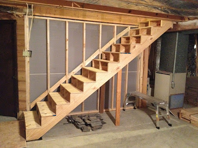LOOK!!!  NEW STAIRS!!  With temporary plywood treads!!
