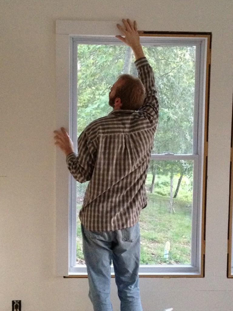 Oh….and here’s Kade showing me what “plain” trim would look like in the sunroom…hmmmm….still no decision has been made 😉