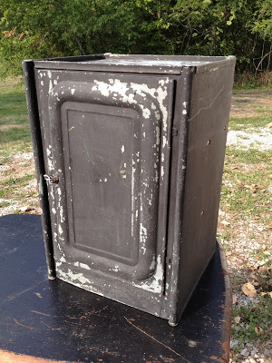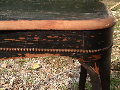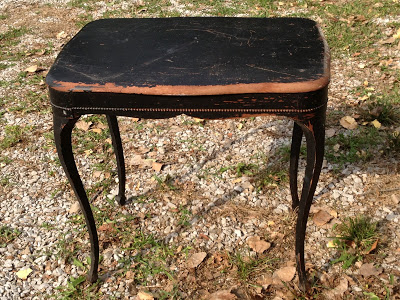 Today I went on a whirlwind trip to look for another vanity. I’m worrying now about the sewing base, and am afraid it’s not going to be able to be fixed. (Ya think I worry a little??) Well, I didn’t find anything at all to use for a vanity…but I did spy this cute little table. We’re going to need one in the basement to put a lamp on…so I figured I might as well find out how much it is. No price sticker anywhere….so they had to call the person that had that booth…