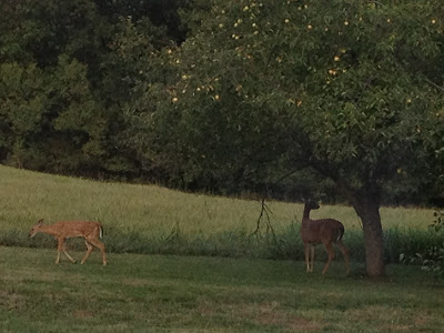 We had some visitors tonight too…eating apples…I’m glad SOMETHING is eating them, cause we’re not. Next year we’ll have to figure out what to do with them. I think the trees are just past their prime and need to be replaced 🙁