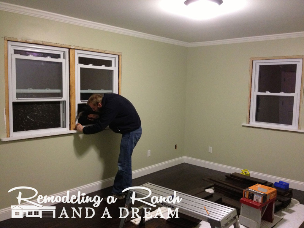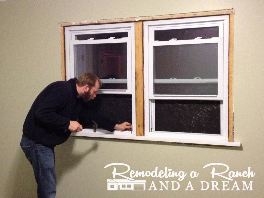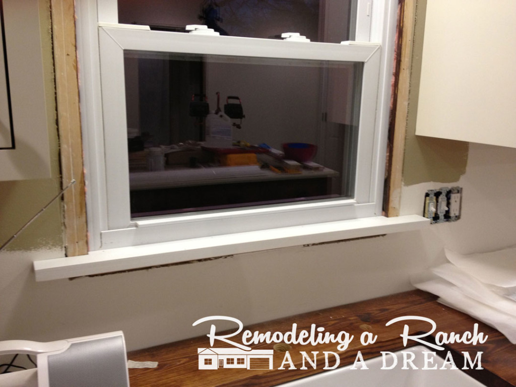 Look! It’s our very first INSTALLED window sill! Don’t you love it? I do! Kade did a great job fitting these. EVERY window had to be custom fit. (imagine that!)