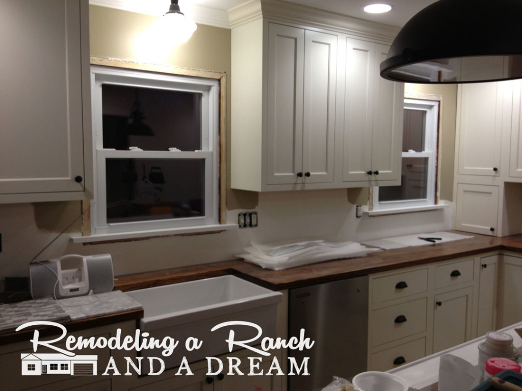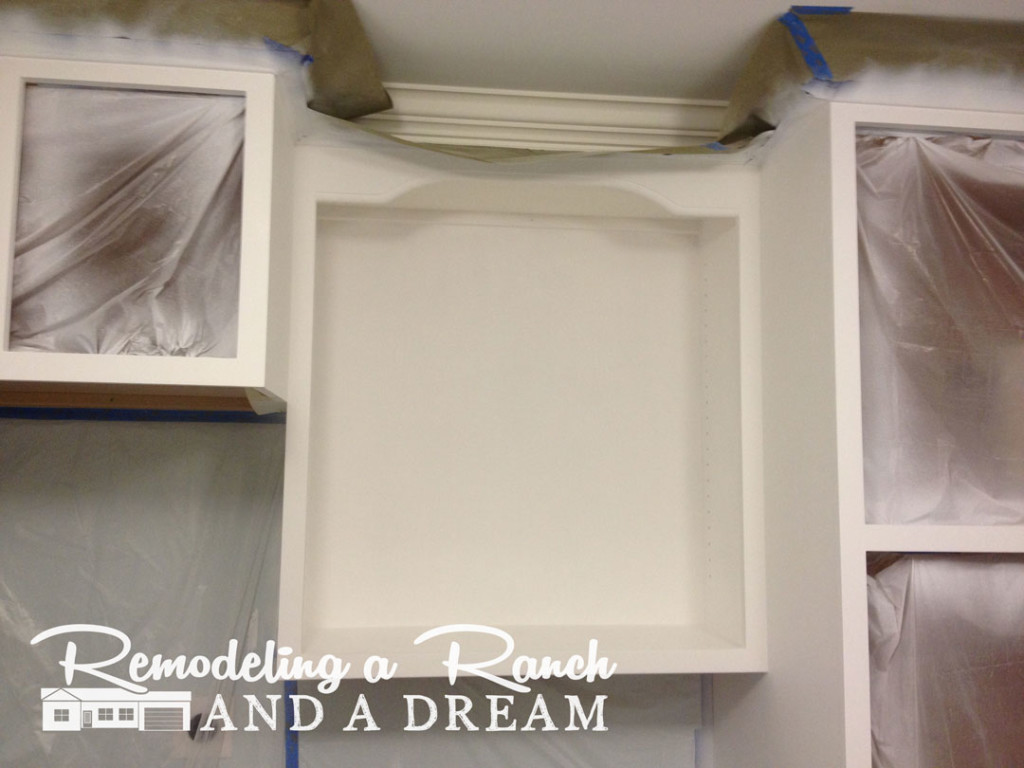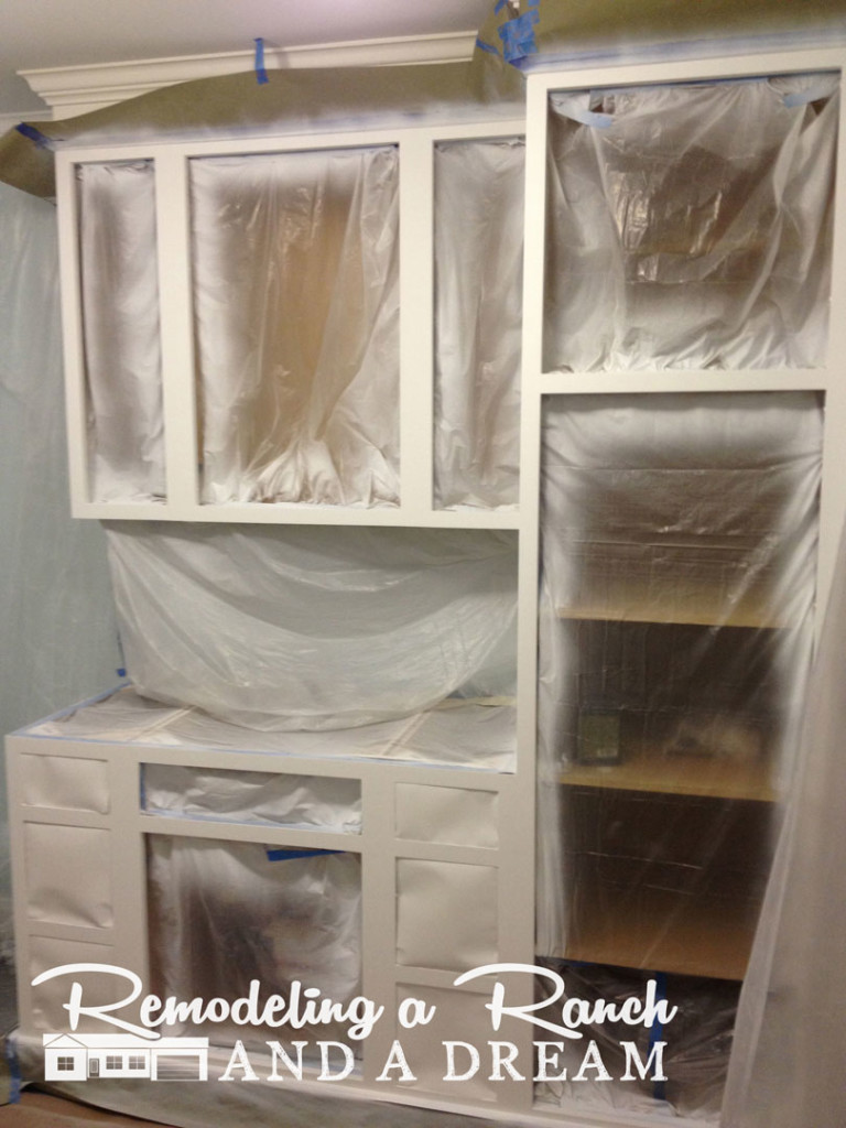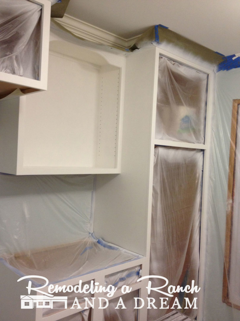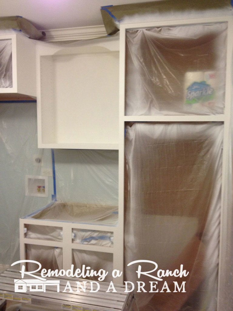 I can’t wait to rip this plastic out of there and reveal the “new” cabinets in all of their glory.