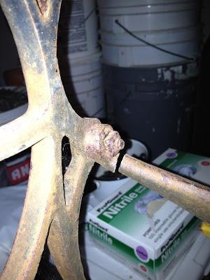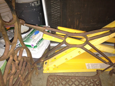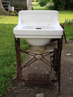 On a side note…a little damage has been done to my Grandma’s old sewing table base that I was using for the sink base. 🙁 I guess to much moving it around – the back support bar broke.