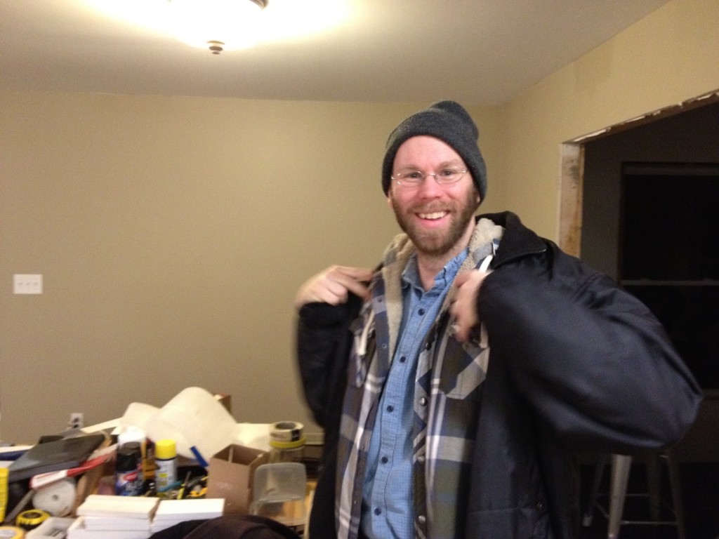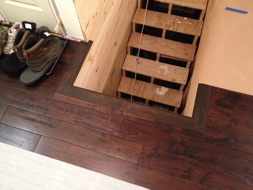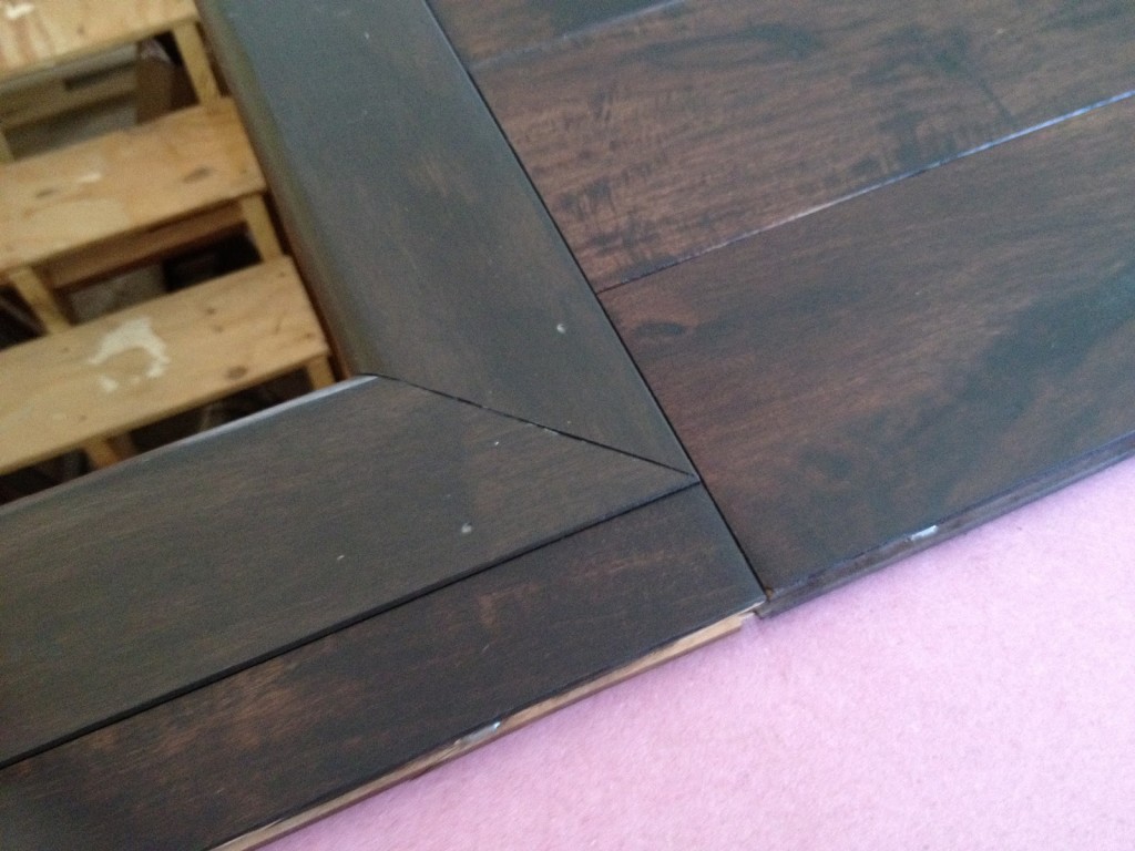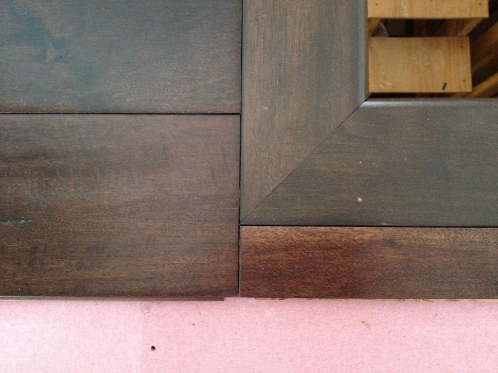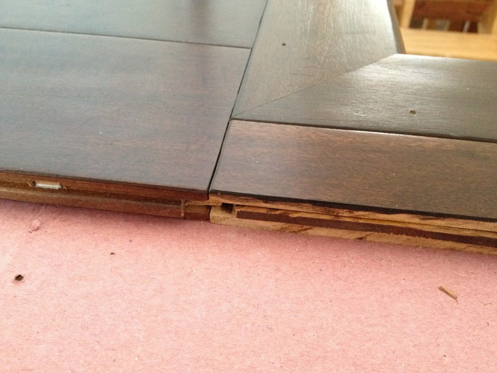 Alright…it’s finally done! No…NOT the floor….but the “meet up” of the hallway and the dining room floor! (Probably the second coolest thing only to being ALL the way done!) We got the spline glued in (the spline is that little piece stuck in our homemade “groove” in our narrowed piece of flooring to bring the two rooms together.