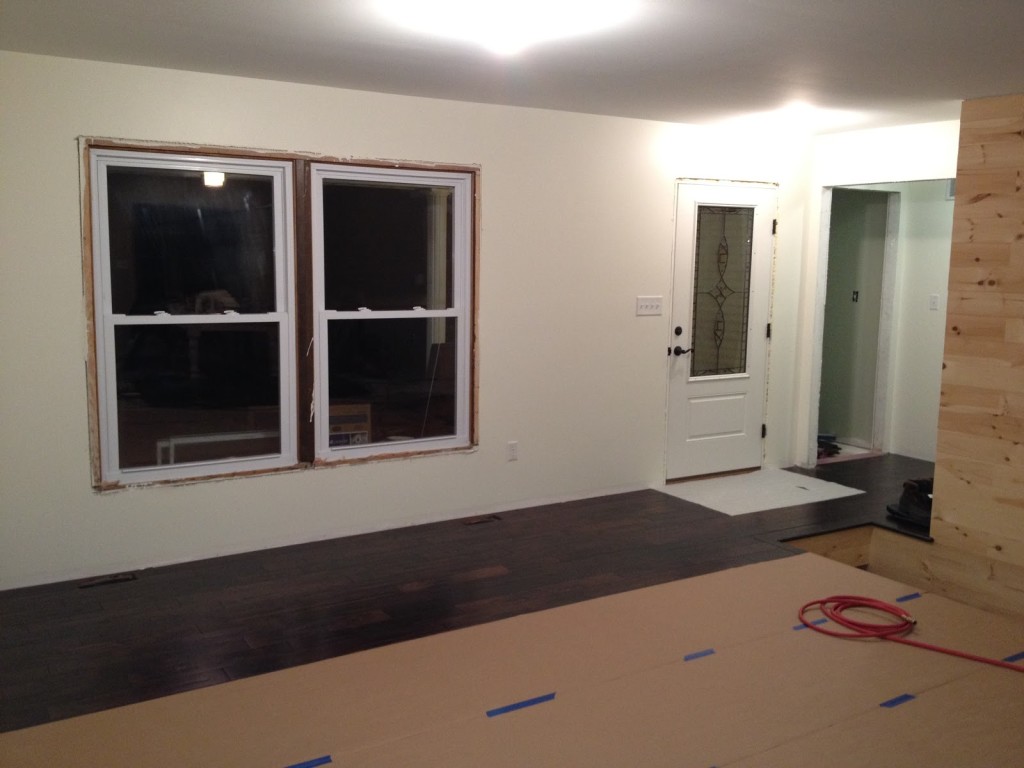 Since we finally got that done we were able to finish the flooring all the way through the dining room and hallway!! YEAH!! That looks so fabulous!!