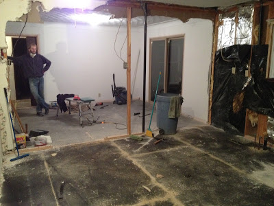 Tonight Dad and Kade were back at it. (I was working on designing the kitchen…which actually may be the death of me!!) They finally got the rest of the soffit out! That room just looks enormous now!